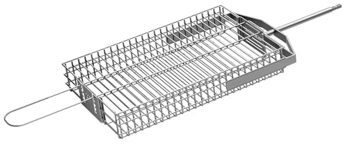 This durable flat basket is designed for live-fire cooking, perfect for all your BBQ needs. It holds up to 20 lbs of food securely with adjustable prongs for various sizes.